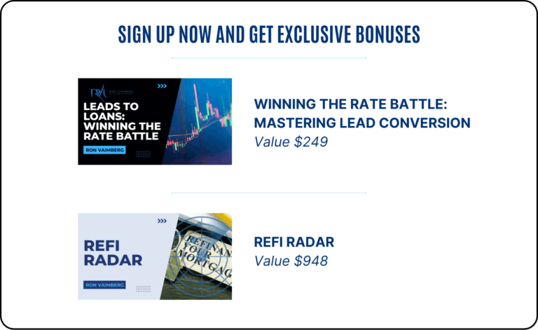 Ron Vaimberg is recognized as one of the most requested, in-demand mortgage trainers and coach’s in the mortgage industry. He is the driving force behind a number of the nation’s top-producing mortgage loan officers. Ron’s success coaching and training are directly responsible for more than 10 billion dollars in increased originator production.